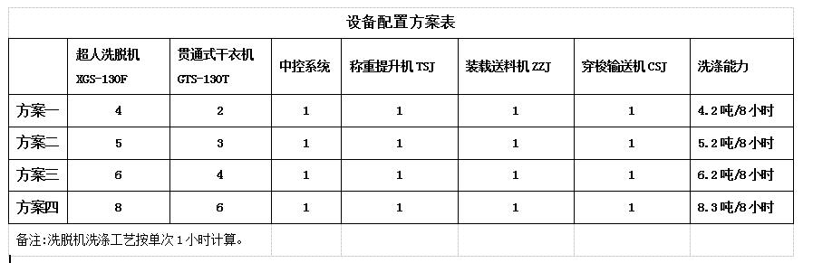 力凈集成式自動化洗滌系統(tǒng)配置方案設備配置方案表
